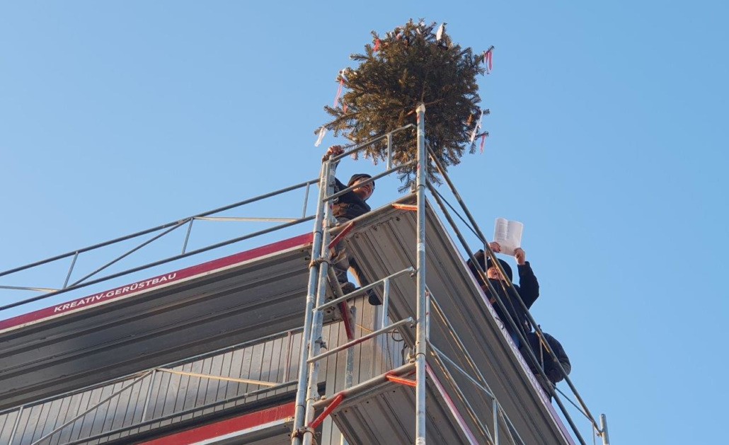 Die Wohnbauselbsthilfe (WS) freut sich über weitere Fortschritte. Nach über einem Jahr laufen die Bauarbeiten für die Wohnhausanlage in der Hohenemserstraße weiterhin nach Plan. Bereits im Herbst dieses Jahres sollen die Mieterinnen und Mieter ihre Wohnungen beziehen können. Den tollen Baufortschritt feierte die Wohnbauselbsthilfe (WS) nun mit einer Firstfeier. Neben zahlreichen zuständigen Handwerkern, feierten auch WS-Geschäftsführer Thomas Schöpf, Bürgermeister Kurt Fischer, die Architekten Helmut Kuess und Manfred Koller, Vertreter der Fachplaner und des Generalunternehmens sowie Mitarbeiterinnen und Mitarbeiter der Gemeinde Lustenau den neuen Bauabschnitt. Auch Gerhard Berchtold, der Seniorchef der Zimmerei Berchtold, leistete einen ganz besonderen Beitrag zu diesem Fest: Mit über 80 Jahren ließ er es sich nicht nehmen, das Dach des Gebäudes zu besteigen und lautstark mit vollem Stolz den Firstspruch zu verkünden.