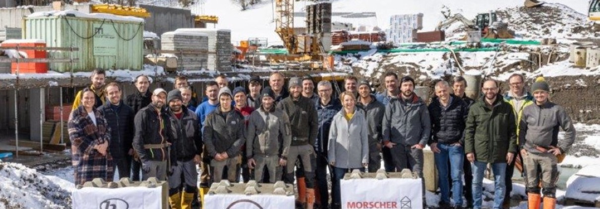 Bis Sommer 2024 soll die Gemeinde Mellau um einige Gebäude erweitert werden. Die Wohnbauselbsthilfe errichtet unter anderem drei Gebäude mit 23 Wohnungen, ein Sportgeschäft sowie neue Büroräume für den Bauträger Morscher Bauprojekte. Vor kurzem fand hierzu die erste Grundsteinlegung statt.