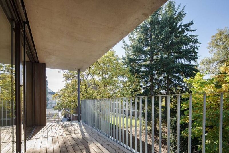 Einst stand neben dem Krankenhaus eine Villa mit ausgedehntem Garten. Unter der Bedingung, dass der Brändlepark als Grünraum erhalten und öffentlich zugänglich gemacht wird, überließ die Besitzerin die Fläche als Schenkung der Stadt. Die Architekten Fink Thurnher haben den Wert dieses Naturraums erkannt und die insgesamt beträchtliche Baumasse möglichst durchlässig am Grundstück platziert, sodass der Park als gemeinsamer Garten für alle seine Wirksamkeit entfalten kann.