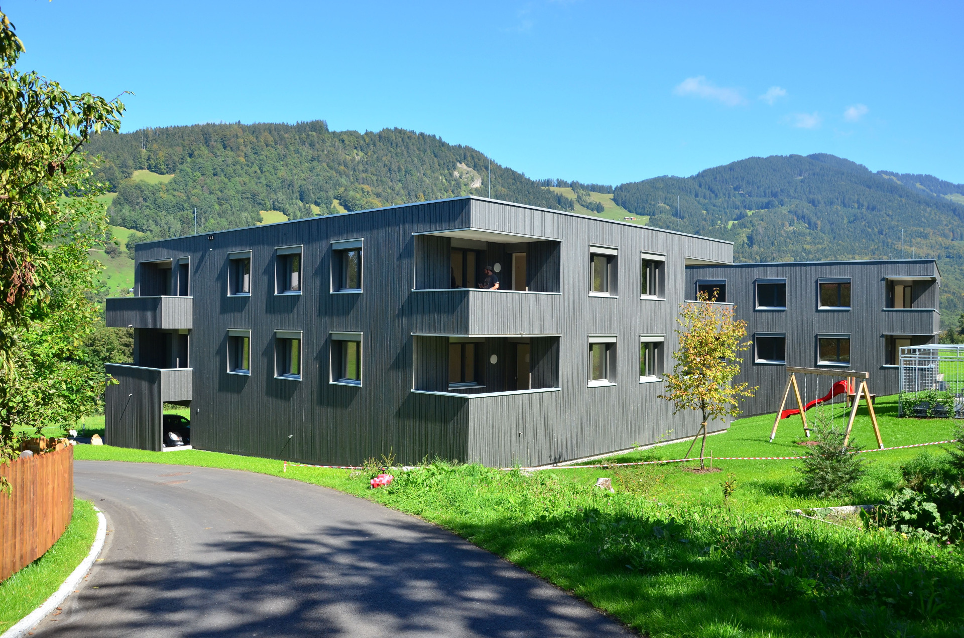 Außenansicht des Wohnbauforschungsprojekt in Dafins © ALPENLÄNDISCHE