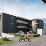 In Schruns baut die Alpenländische Wohnbaugesellschaft gerade 15 Mietwohnungen in klimapositiver Holzmodulbauweise. Die Übergabe an die neuen Bewohnerinnen und Bewohner ist für Jänner 2021 geplant.