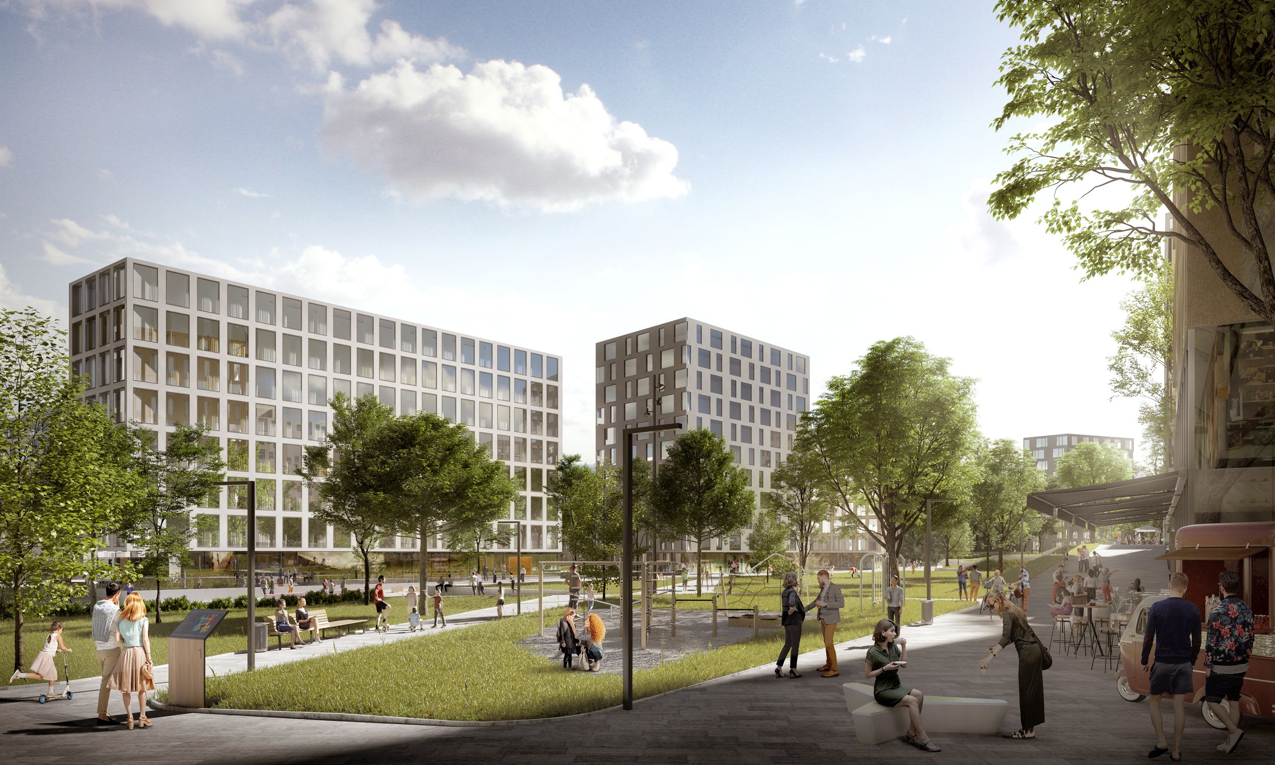 Ende Juni erhielt das Projekt aufgrund klimafitter Konzepte wie beispielsweise der großflächigen Begrünung des Areals, Urban Gardening Möglichkeiten und dem umfassenden Regenwassermanagement die weltweit erste GREENPASS Platinum Zertifizierung für klimafitte und nachhaltige Stadtentwicklung (GBV-aktuell berichtete).