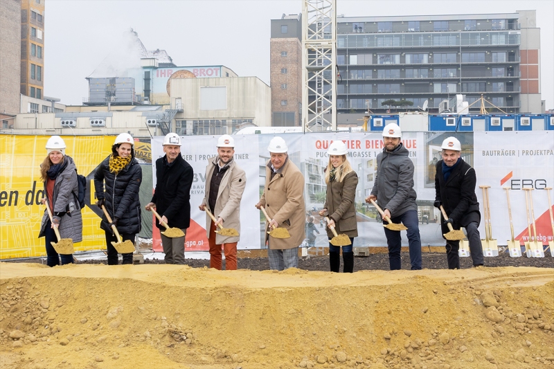 Der erste Schritt für die Bauarbeiten eines neuen Projekts im Bezirk Favoriten wurden vor kurzem mit dem Spatenstich eingeleitet. Auf dem ehemaligen Areal der Ankerbrotfabrik verwirklichen die EBG und die WBV-GPA gemeinsam eine Wohnhausanlage mit 223 geförderten Mietwohnungen. Die Architektenteams von Gerner Gerner PLUS Architektur, Transparadiso ZT KG und M&S Architekten ZT GmbH sowie der Projektleiter beider Baufirmen Swietelsky und Hazet Bau wohnten dem besonderen Ereignis bei.