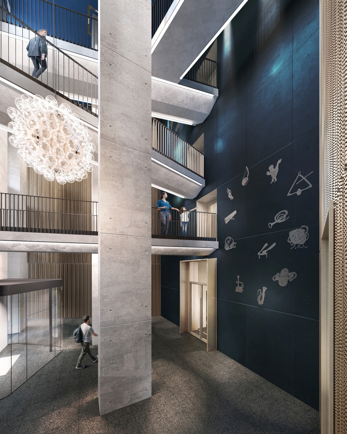 Jedem der 38 Stockwerke wurde noch eine individuelle Note verliehen: Die Künstlerin und Musikerin Katrin Plavčak hat aus schwarzem Papier einen Scherenschnitt eines individuellen Musikinstruments gefertigt, die gesamt ein vertikales Orchester ergeben, dass das Hochhaus symbolisch musikalisch bespielen soll. Die Kunstwerke lassen sich vom Stiegenhaus aus bestaunen.