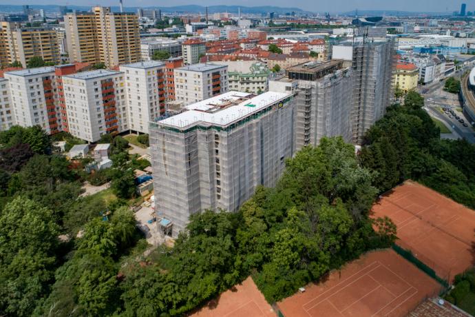 Die Arbeiten der BWSG an den Gebäuden in Simmering sind bereits voll im Gange. So wurden die Sanierungen an Stiege 1 bereits fast vollständig abgeschlossen. Die Fassadenarbeiten an Siege 2 und 3 sind weit vorangeschritten, zudem werden die Balkone wiederinstandgesetzt. An den Gebäuden der Stiege 7-9 werden derzeit die Gerüste errichtet um baldmöglichst mit den Arbeiten an den Fassaden und den Dächern beginnen zu können.