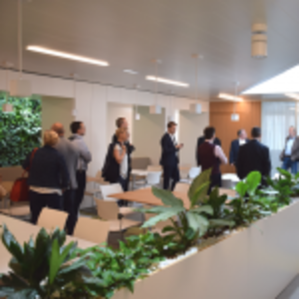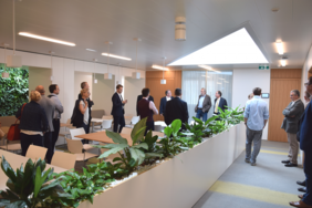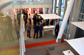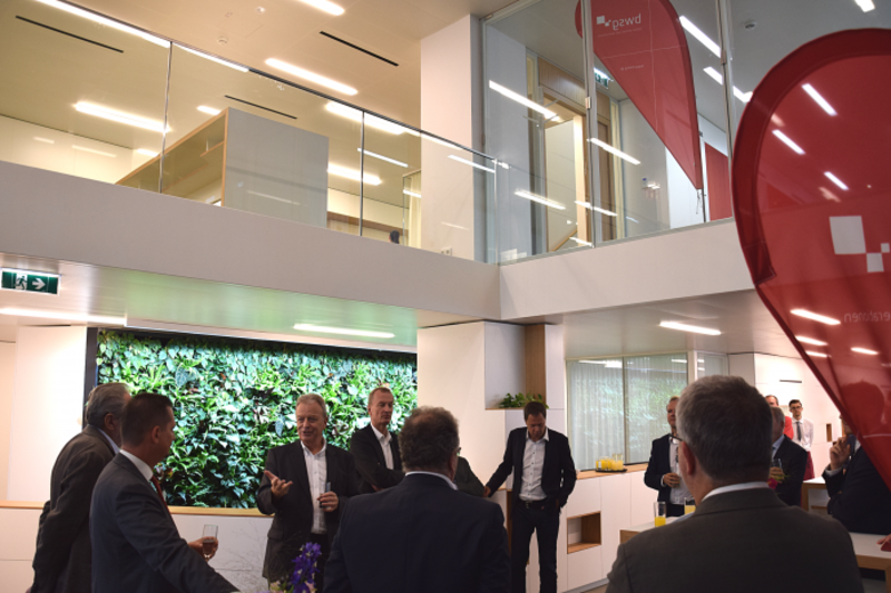Beim Open House Day lud die Geschäftsführung die Geschäftspartner dazu ein, die neue Firmenzentrale in der Triester Straße kennenzulernen. Betreten wird das Gebäude durch einen roten Würfel der zum Empfangsbereich mit angrenzendem Kundencenter führt. Auf ca. 5.000 m² wurden moderne Büroräumlichkeiten mit 155 Arbeitsplätzen sowie 40 Reservearbeitsplätzen - aufgeteilt auf 3 Stockwerke - errichtet. Die Innenräume wurden vom Architekturbüro gerner°gerner plus gestaltet.