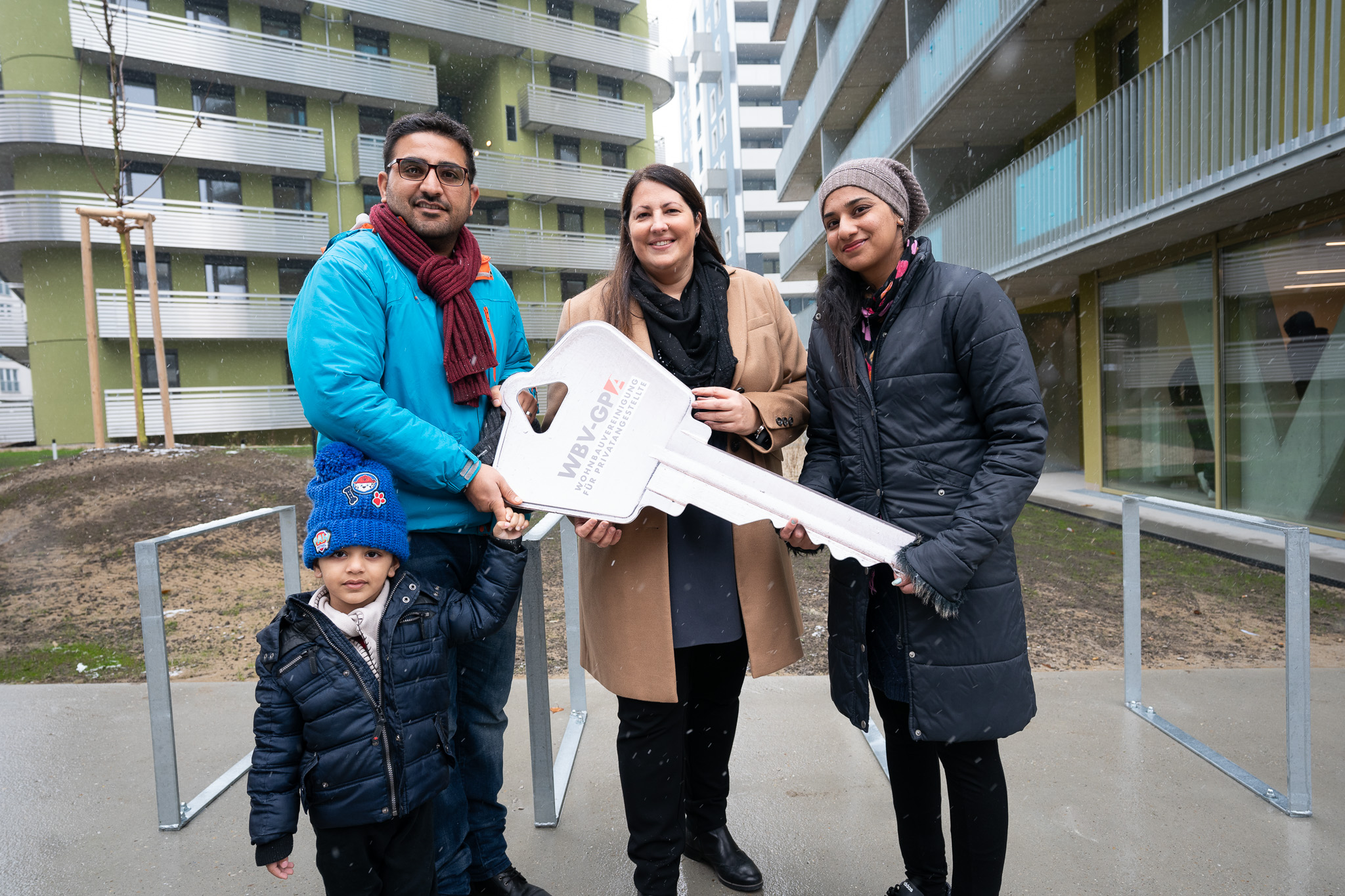 Wohnbaustadträtin Katrin Gaal bei der Schlüsselübergabe Fotocredit: David Bohmann / PID