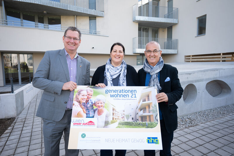 Ein vielfältiges Angebot an Wohnformen und Wohnungstypen bietet das neue Wohnprojekt „Generationenwohnen21“ in der Anton-Schall-Gasse 5 in Floridsdorf. Frauen- und Wohnbaustadträtin Kathrin Gaal, Bezirksvorsteher Georg Papai sowie „Neue Heimat Gewog“ (NHG)-Geschäftsführer Karl Wurm waren bei der Schlüsselübergabe des neuen Wohnprojekts dabei.