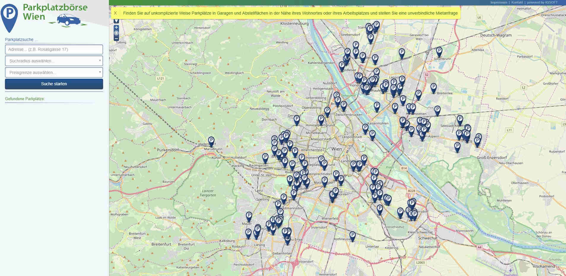 Auf Initiative der GESIBA und der Sozialbau haben sich insgesamt zehn gemeinnützige Bauträger auf der Plattform www.parkplatzboersewien.at zusammengeschlossen. Jeder Interessent, egal ob Wienerin oder Wiener, Pendlerin oder Pendler, kann auf der Onlineplattform über einen Stadtplan oder über Adress-Suche verfügbare Dauerparkplätze suchen und sich in der Folge direkt elektronisch an die jeweilige gemeinnützige Bauvereinigung wenden. Der Abschluss eines Mietvertrages kann dann schnell und unbürokratisch erfolgen. Die Mietvertragsdauer beläuft sich auf mindestens sechs Monate. Ziel der Parkplatzbörse ist es, einen Beitrag zur Verbesserung der Parkraumbewirtschaftung in Wien und zu aktivem Umweltschutz zu leisten.