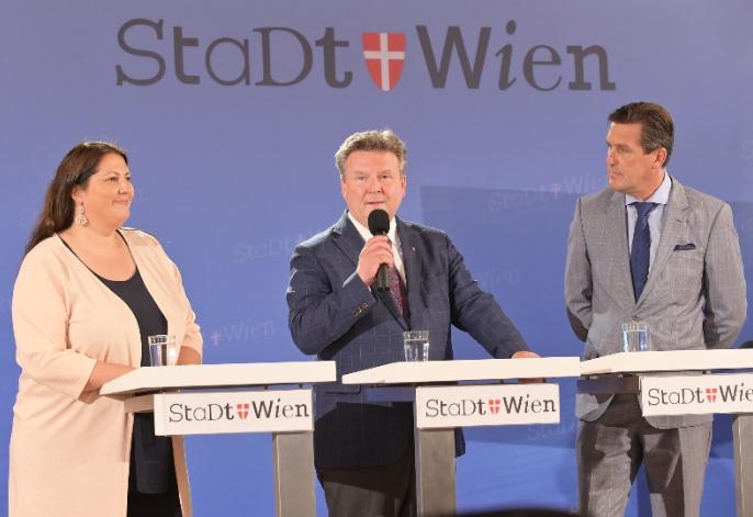 V.l.n.r: Kahrina Gaal, Michael Ludwig und Peter Hanke bei der Präsentation der digitalen Baueinreichung. © C.Jobst/PID