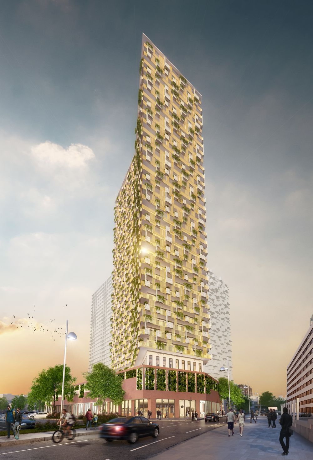 Das Hochhaus des österreichischen Siedlungswerks wird auf 35 Geschoßen vielfältige Wohnformen auf 114 Metern Höhe bieten. Das Wohnungsangebot mit knapp 400 Wohnungen setzt sich aus ca. 170 Mietwohnungen im Rahmen der Wiener Wohnbauinitiative 2015 sowie rund 230 hochwertigen freifinanzierten Eigentumswohnungen zusammen. Alle Wohnungen werden über einen individuellen Freibereich verfügen. Zusätzlich entstehen hier mehr als 90 Serviced Apartments von room4rent (einer Marke der ÖSW-Gruppe) sowie Gewerbe- und Gastronomieflächen als unmittelbares Angebot für die der zukünftigen Bewohner. Die Fertigstellung dieses anspruchsvollen Bauvorhabens ist für Ende 2022 geplant.