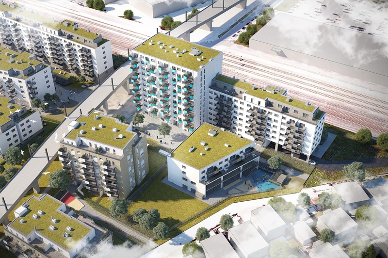 Das Angebot des neuen Wohnareals, das sich über sieben Baukörper auf zwei Liegenschaften erstreckt, ist in mehrerer Hinsicht vielseitig. So werden die künftigen Wohnungen beispielsweise sowohl als freifinanzierte Mietwohnungen als auch als geförderter Wohnraum (mit und ohne Kaufoption) angeboten. Auch werden 109 der insgesamt 347 2- bis 4-Zimmer-Wohnungen als SMART-Wohnungen umgesetzt, die durch kompakte Grundrisse und besonders effiziente Flächennutzung überzeugen.